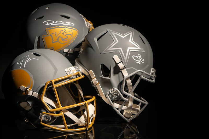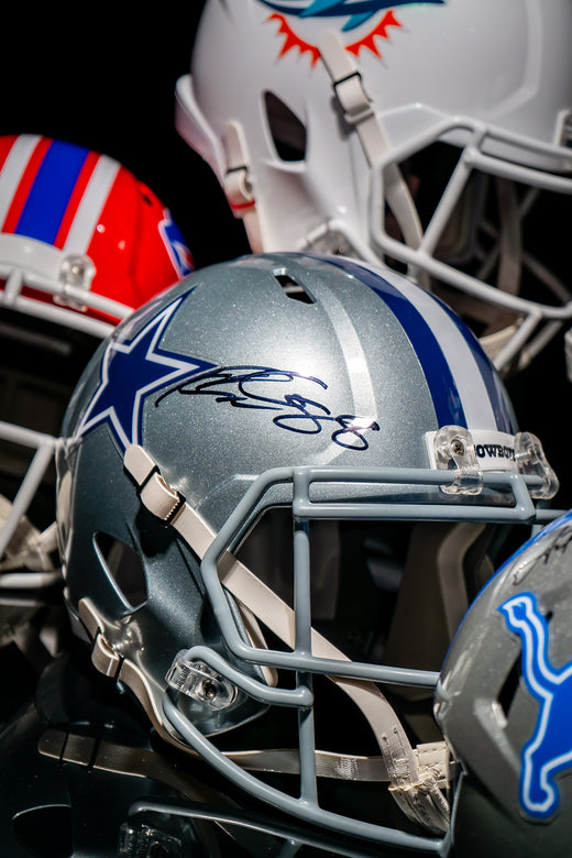 Invest in football history with Hall of Fame pieces including our Joe Thomas signed Cleveland Browns mini helmet, Calvin Johnson memorabilia collection, and Jason Kelce signed items. Current stars like Brock Purdy offer prospecting opportunities for collectors betting on future Hall of Famers. Learn how to authenticate NFL jerseys and discover the best signed NFL memorabilia from the 2025 season.