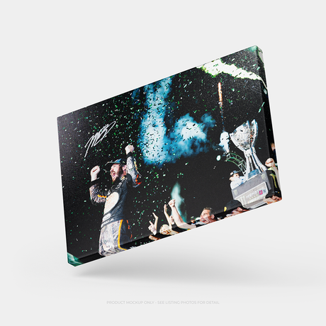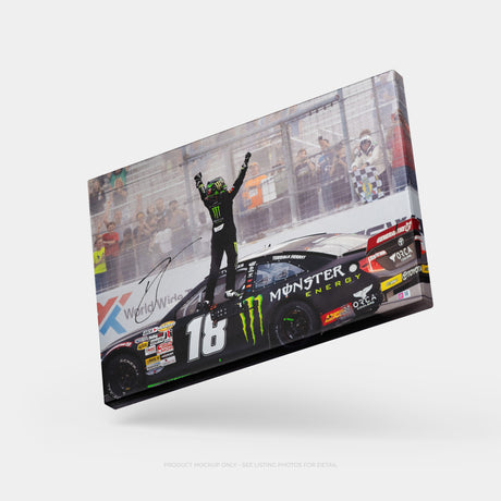 Kyle Busch Autographed 2019 NASCAR Championship Trophy Canvas 20x30 (PA)