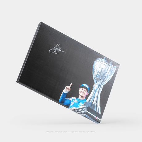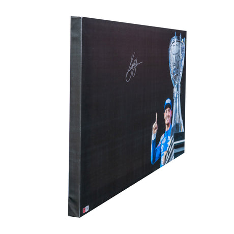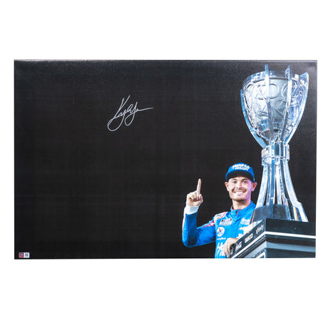 Kyle Larson Signed 2021 NASCAR Cup Champ Trophy Photo 20x30 Canvas (COA)