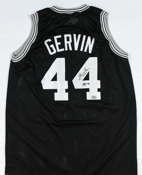 George Gervin Autographed Black Pro Style Jersey w/ HOF - JSA *Black