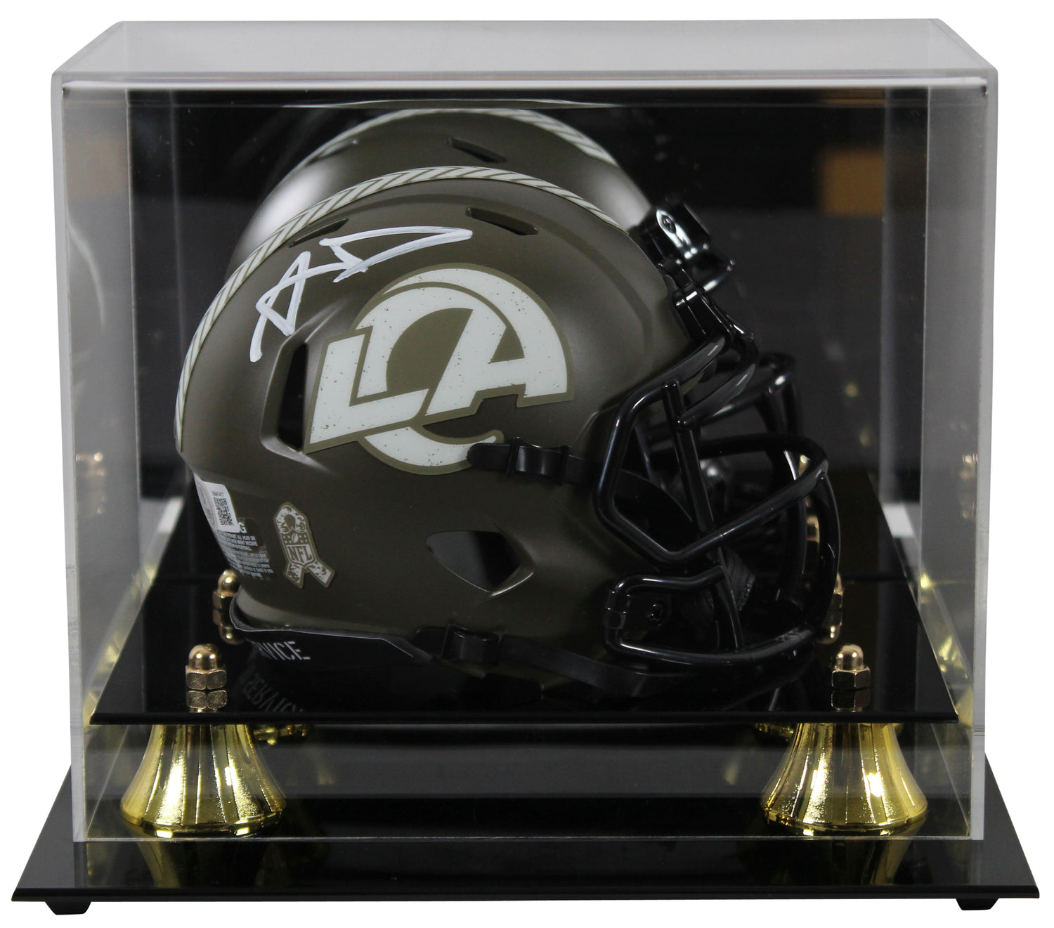 Own a piece of NFL history with this Autographed Los Angeles Rams Alternate Salute to Service Speed Mini Helmet, personally signed by Aaron Donald. A must-have collectible for devoted Rams fans and memorabilia enthusiasts, this helmet celebrates one of the most dominant defensive players in football.