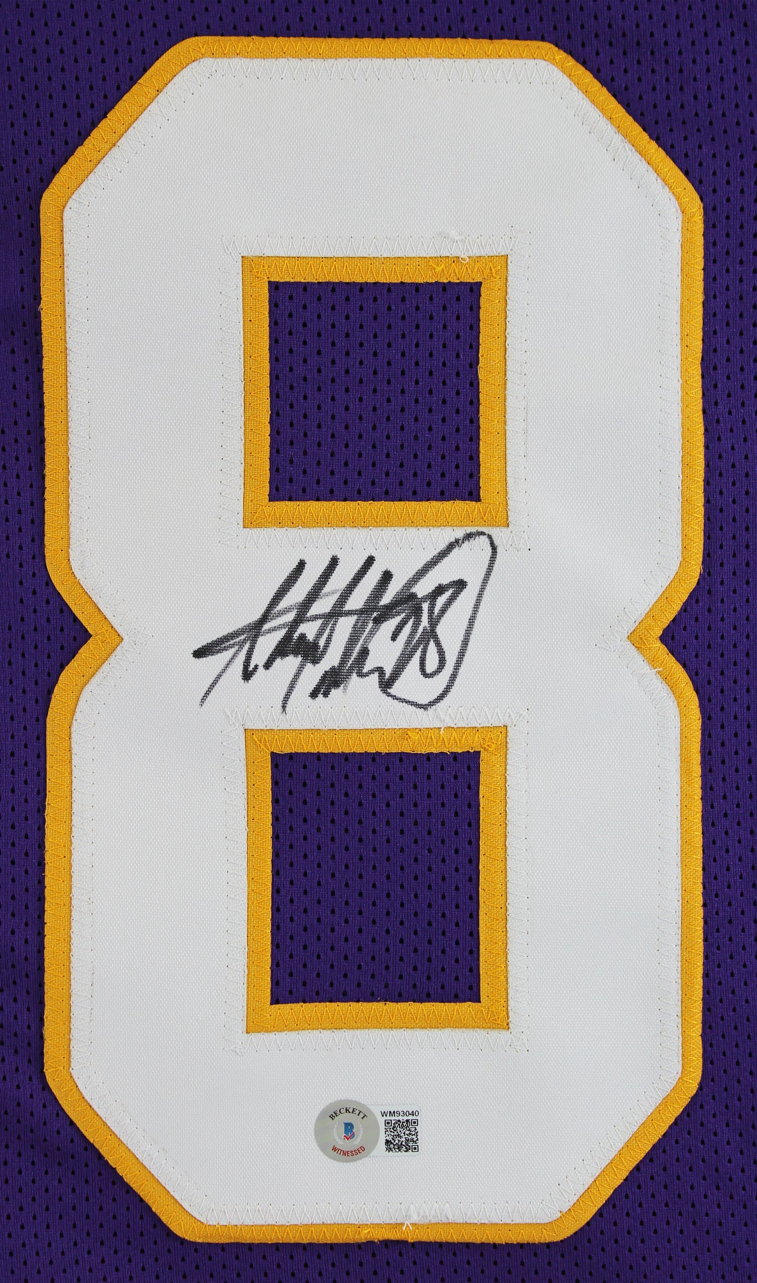 Own a piece of football history with this Adrian Peterson Autographed Purple Pro Style Framed Jersey, personally signed by the legendary Minnesota Vikings running back. This collector’s item is 100% authentic, featuring a Beckett Authentication Services (BAS) hologram with a scannable QR code for instant verification.
