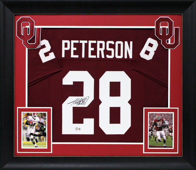 Oklahoma Adrian Peterson Authentic Signed Maroon Pro Style Framed Jersey BAS Wit