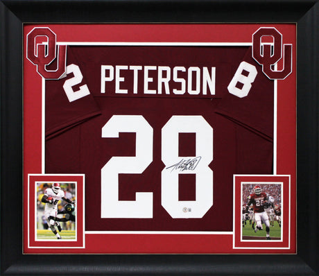 Oklahoma Adrian Peterson Authentic Signed Maroon Pro Style Framed Jersey BAS W 2