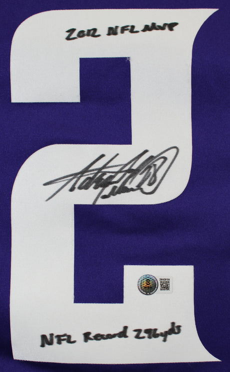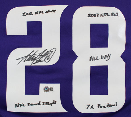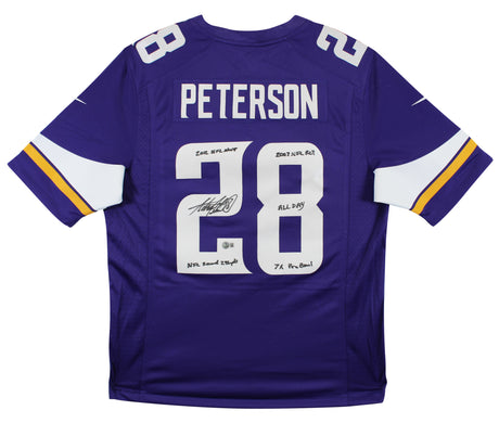 Vikings Adrian Peterson "Career Stat" Signed Purple Nike Game Jersey BAS Witness