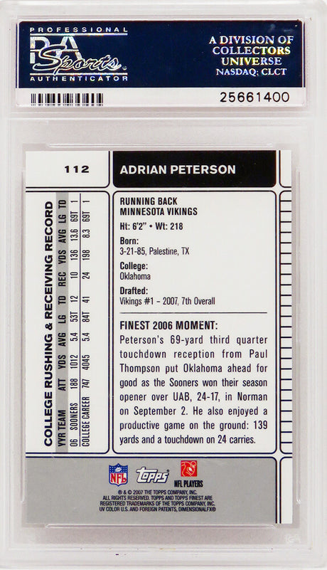 Adrian Peterson (Minnesota Vikings) 2007 Bowman Chrome #BC65 RC Rookie Card - PSA 10 GEM MINT