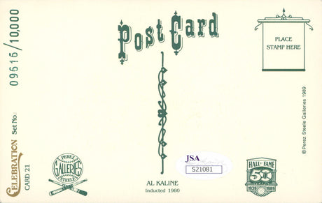 Tigers Al Kaline Authentic Signed 3.5x5.5 Perez Steele Postcard JSA #S21081