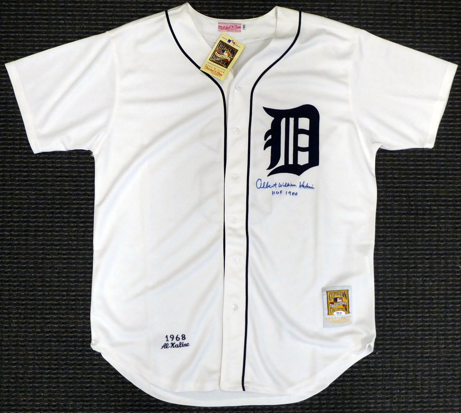 This authentic Mitchell & Ness Detroit Tigers Jersey has been hand-signed by Al Kaline, one of baseball’s all-time greats. What makes this piece truly special is that Al Kaline signed his full name, Albert William Kaline, and included the inscription "HOF 1980", commemorating his induction into the Baseball Hall of Fame.