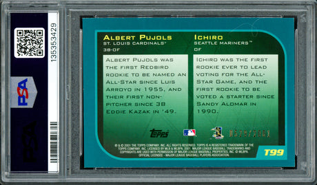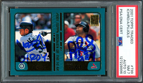 The collection features multiple 2001 Topps Traded Gold Rookie Cards featuring dual signatures from Albert Pujols and Ichiro Suzuki, two of the greatest players from the 2001 rookie class. These limited edition cards (#/2001) combine two Hall of Fame careers on a single collectible, creating unique investment opportunities.