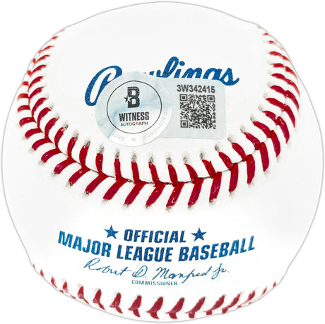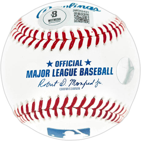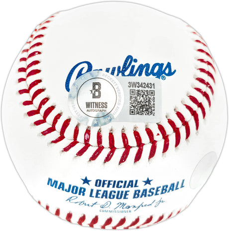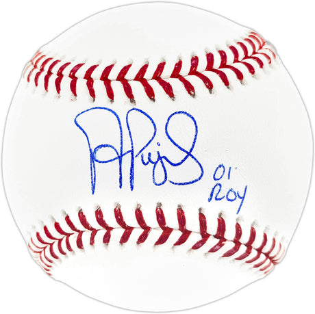 The Official MLB Baseball with "01 ROY" inscription and BAS Witnessed authentication adds significant value by documenting Pujols' 2001 Rookie of the Year award. This inscription creates a unique piece that stands apart from standard autographs, connecting directly to his remarkable debut season when he hit .329 with 37 home runs and 130 RBIs.