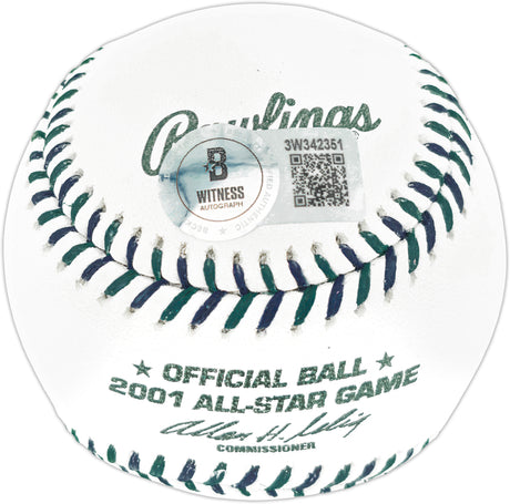 Official MLB baseballs provide authentic specifications and branding that enhance display appeal and investment value. The combination of dual Hall of Fame signatures, witnessed authentication, meaningful inscription, and official equipment creates premium collectibles that appeal to collectors of both players and fans of the historic 2001 rookie class.