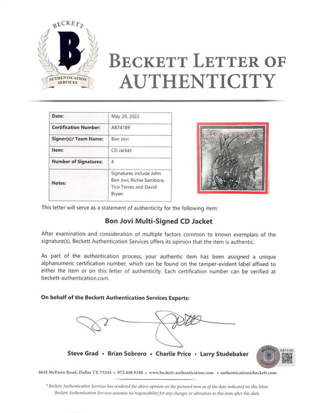 (4) John Bon Jovi, Richie Sambora, Torres & Bryan Signed Cd Cover BAS #AB74189