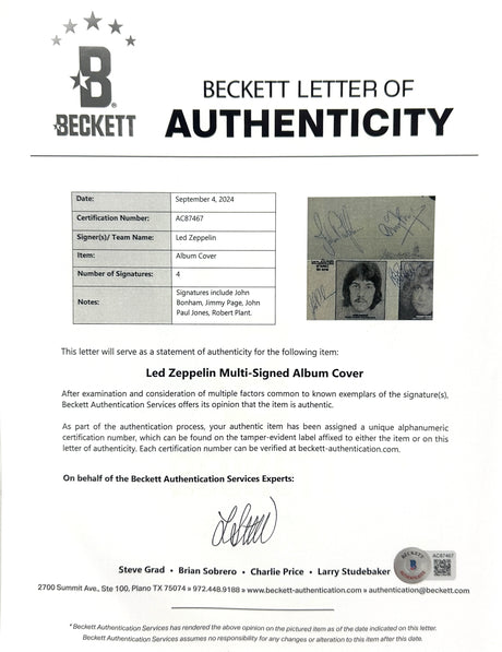 (4) Page, Plant, Bonham & Jones Signed Led Zepplin I Album Cover w Vinyl BAS JSA