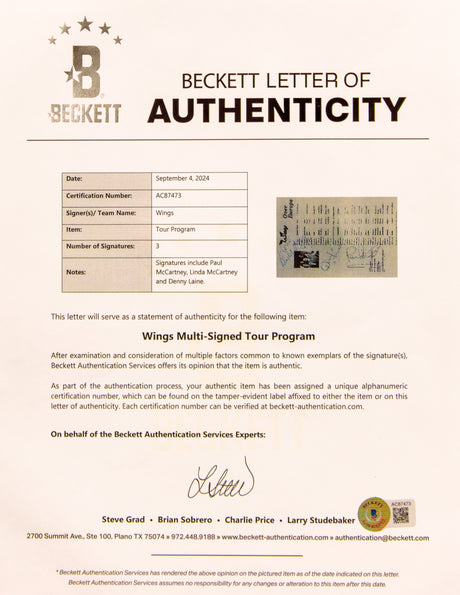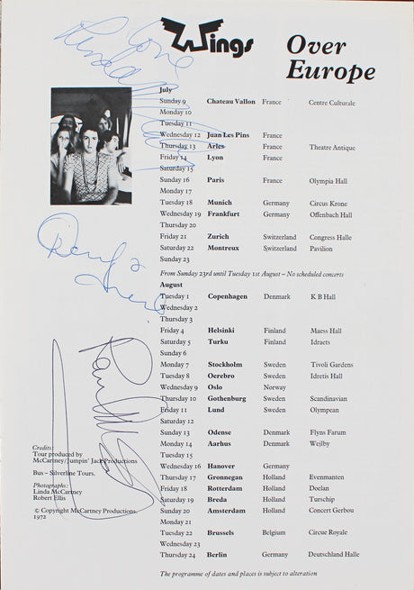 (3) Linda & Paul McCartney, Denny Lane Signed Wings Over Europe Tour Program BAS