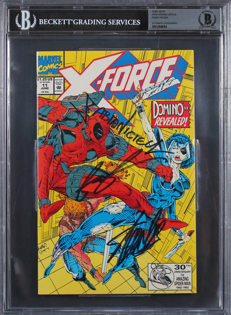 (3) Stan Lee, Rob Liefeld & Fabian Nicieza Signed X-Force #11 Comic BAS Slabbed