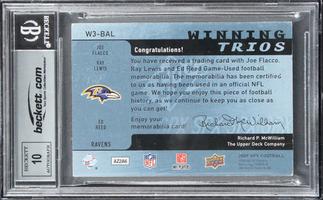 (3) Flacco, Lewis & Reed Signed 2009 SPX Trios #BAL #23/25 Card Auto 10 BAS Slab