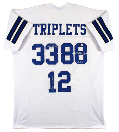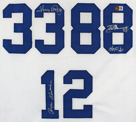 (3) Staubach, Dorsett & Pearson Signed White Pro Style Jersey BAS Witnessed