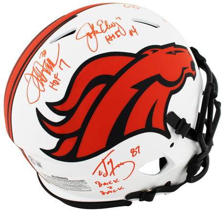 (4) Elway, Sharpe, Davis & McCaffrey Signed Lunar F/S Speed Proline Helmet BAS