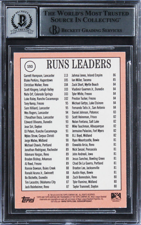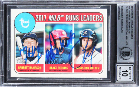 (3) Hampson, Perkins, & Walker Signed 2018 Topps HM #193 Card Auto 10! BAS Slab