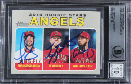 (3) Arcia, Buttrey, Jerez Signed 2019 Topps Heritage #244 Card Auto 10! BAS Slab