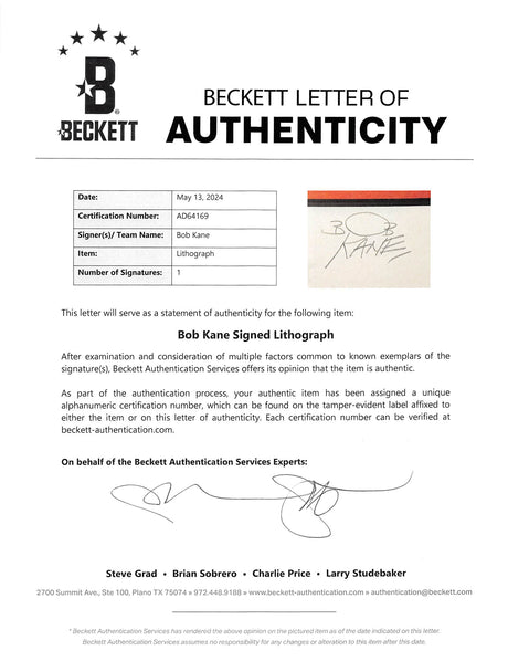 Bob Kane Batman Authentic Signed & Framed 22x30.5 Lithograph BAS #AD64169