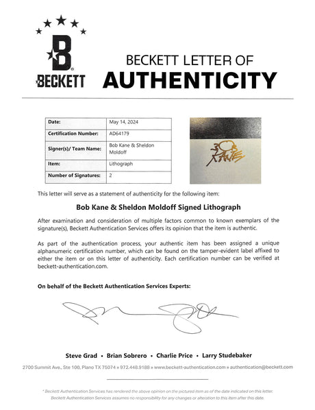 Bob Kane & Sheldon Moldoff Batman Signed & Framed 20.5x24.5 Litho BAS #AD64179