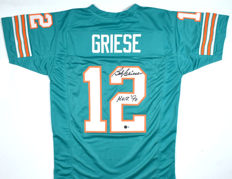 Bob Griese Autographed Teal Pro Style Jersey w/ HOF - Beckett W Hologram *Black