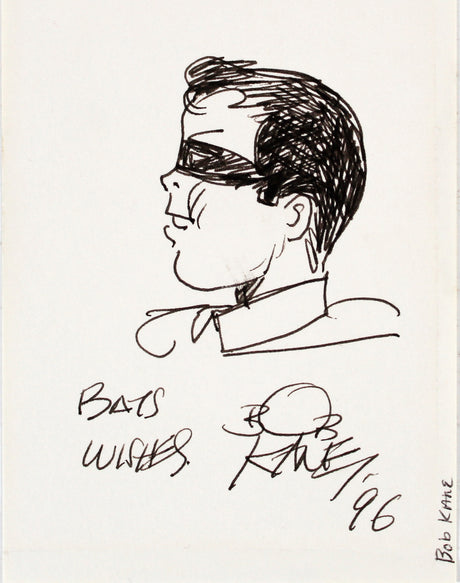 Bob Kane Bats Wishes '96 Authentic Signed 3x4 Robin Sketch BAS #AC33530