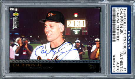 Very low stock (1 unit)$139Unit price /UnavailableCal Ripken Jr. Autographed 1996 Collector's Choice Card #1 Baltimore Orioles PSA/DNA #83694189
