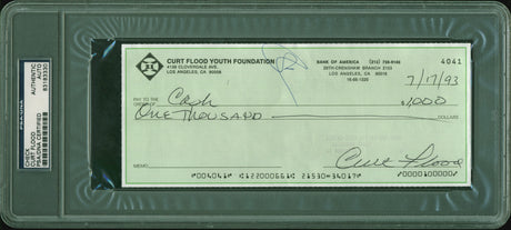 Cardinals Curt Flood Authentic 2x Signed 3.5x8.5 1993 Check PSA/DNA Slabbed