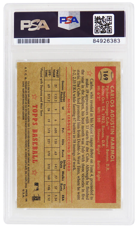 Low stock (4 units)$189Unit price /Unavailable Carlos Marmol Signed Chicago Cubs 2006 Topps 52 Rookie Baseball Card #169 - (PSA Encapsulated)