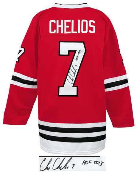 Chris Chelios Signed Red Custom #7 Hockey Jersey w/HOF 2013