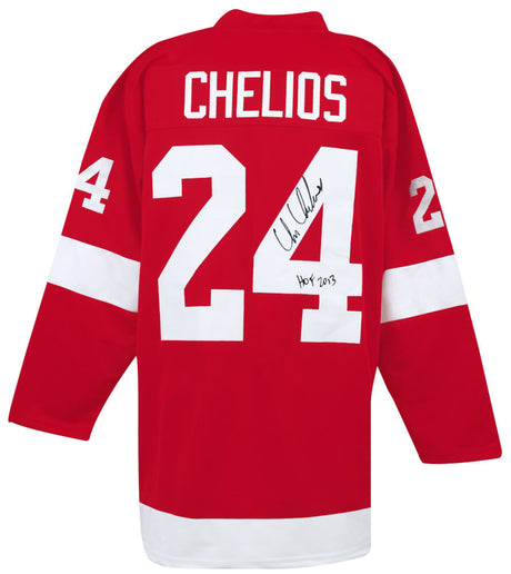 Chris Chelios Signed Red Custom #24 Jersey w/HOF 2013
