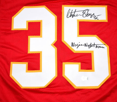 Christian Okoye Signed Red Pro Style Jersey w/ Nigerian Nightmare-Beckett W Holo