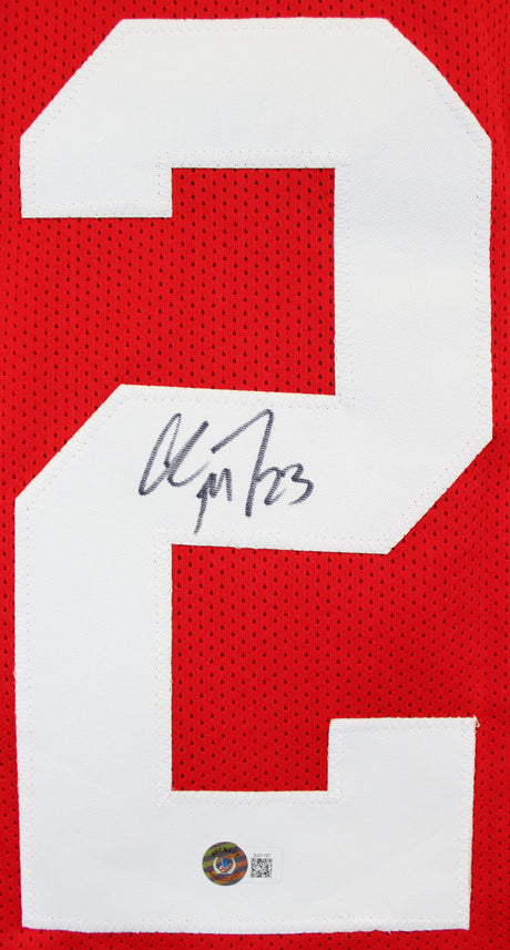 Christian McCaffrey Authentic Signed Red Pro Style Jersey BAS Witnessed