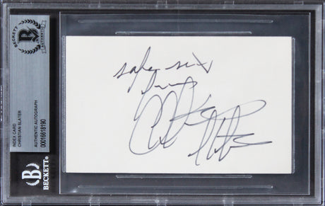 Very low stock (1 unit)$99Unit price /Unavailable Christian Slater Heathers Authentic Signed 3x5 Index Card BAS Slabbed 2