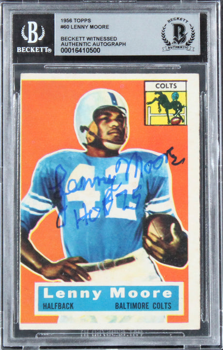 Colts Lenny Moore "HOF 75" Authentic Signed 1956 Topps #60 RC Card BAS Slabbed