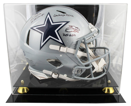 Cowboys Emmitt Smith "HOF 10" Signed F/S Speed Proline Helmet W/ Case BAS Wit