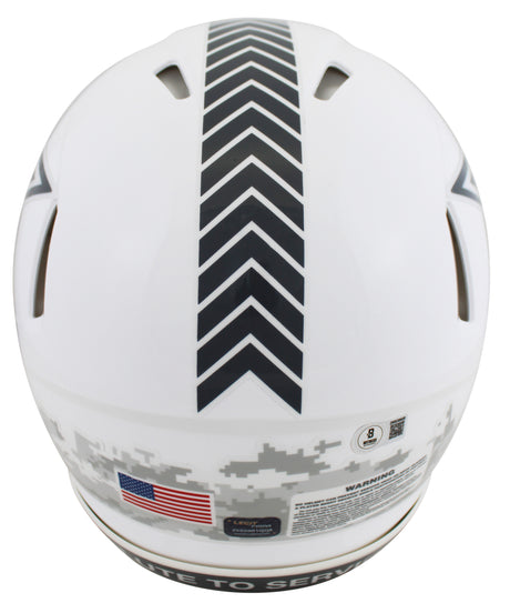Cowboys Emmitt Smith Signed Salute To Service F/S Speed Proline Helmet BAS Wit