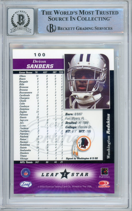- Ships Free2000 Leaf Certified #100 Deion Sanders Dallas Cowboys BGS Autograph 10 Very low stock (1 unit)$159Unit price /Unavailable
