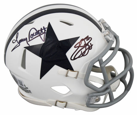 Cowboys Emmitt Smith & Tony Dorsett Signed 1960-63 TB Speed Mini Helmet BAS Wit