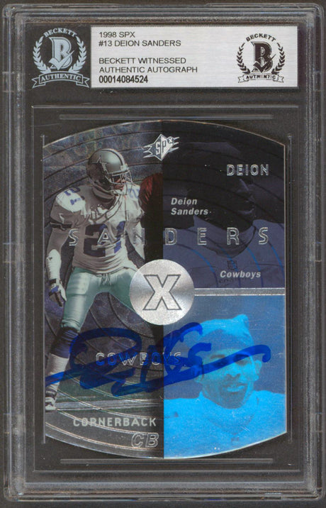 Cowboys Deion Sanders Authentic Signed 1998 SPX #13 Card Autographed BAS Slabbed