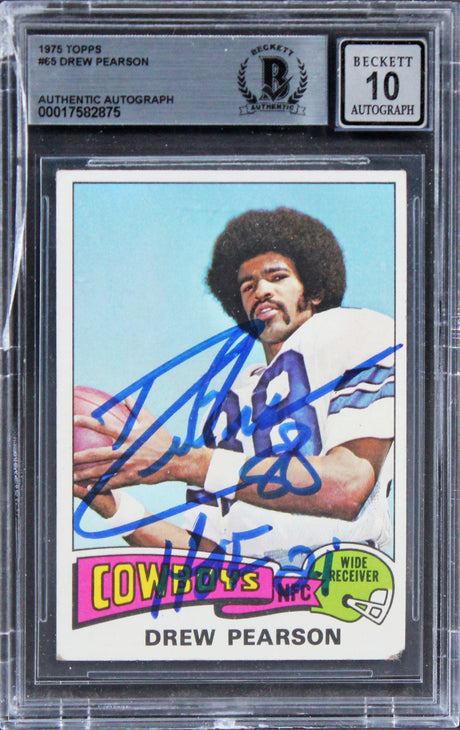 Cowboys Drew Pearson "HOF 21" Signed 1975 Topps #65 Card Auto 10! BAS Slabbed