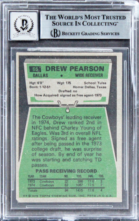 Cowboys Drew Pearson "HOF 21" Authentic Signed 1975 Topps #65 Card BAS Slabbed 1