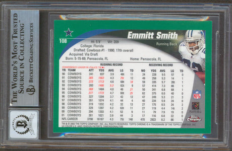Cowboys Emmitt Smith Signed 2002 Topps Chrome #108 Card Auto Graded 10! BAS Slab