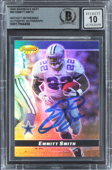 Cowboys Emmitt Smith Signed 2000 Bowman's Best #60 Card Auto Graded 10! BAS Slab