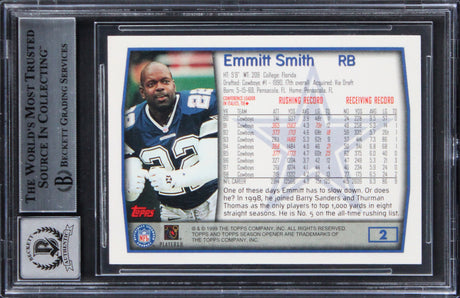 Cowboys Emmitt Smith Signed 1999 Topps #2 Card Auto Graded Mint 10! BAS Slabbed