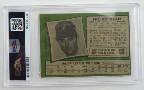 1971 Topps Nolan Ryan Signed Auto Autograph Encapsulated Baseball Card PSA/DNA