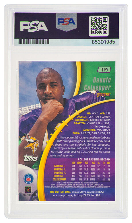 $59Unit price /UnavailableDaunte Culpepper Signed Vikings 1999 Edge Odyssey Rookie Football Card #83 - (PSA Encapsulated)
