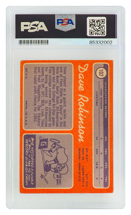 $239Unit price /UnavailableDave Robinson Signed Green Bay Packers 1970 Topps Football Card #102 w/HOF 2013 - (PSA Encapsulated)